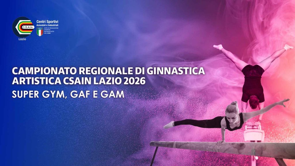 Lo Csain Lazio presenta il calendario ufficiale del Campionato Ginnastica Artistica CSAIn Lazio 2026 dedicato alle discipline di Ginnastica Artistica Femminile (GAF), Ginnastica Artistica Maschile (GAM) e SuperGym.